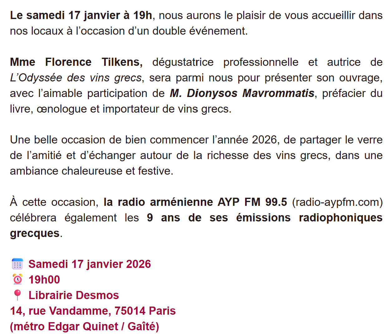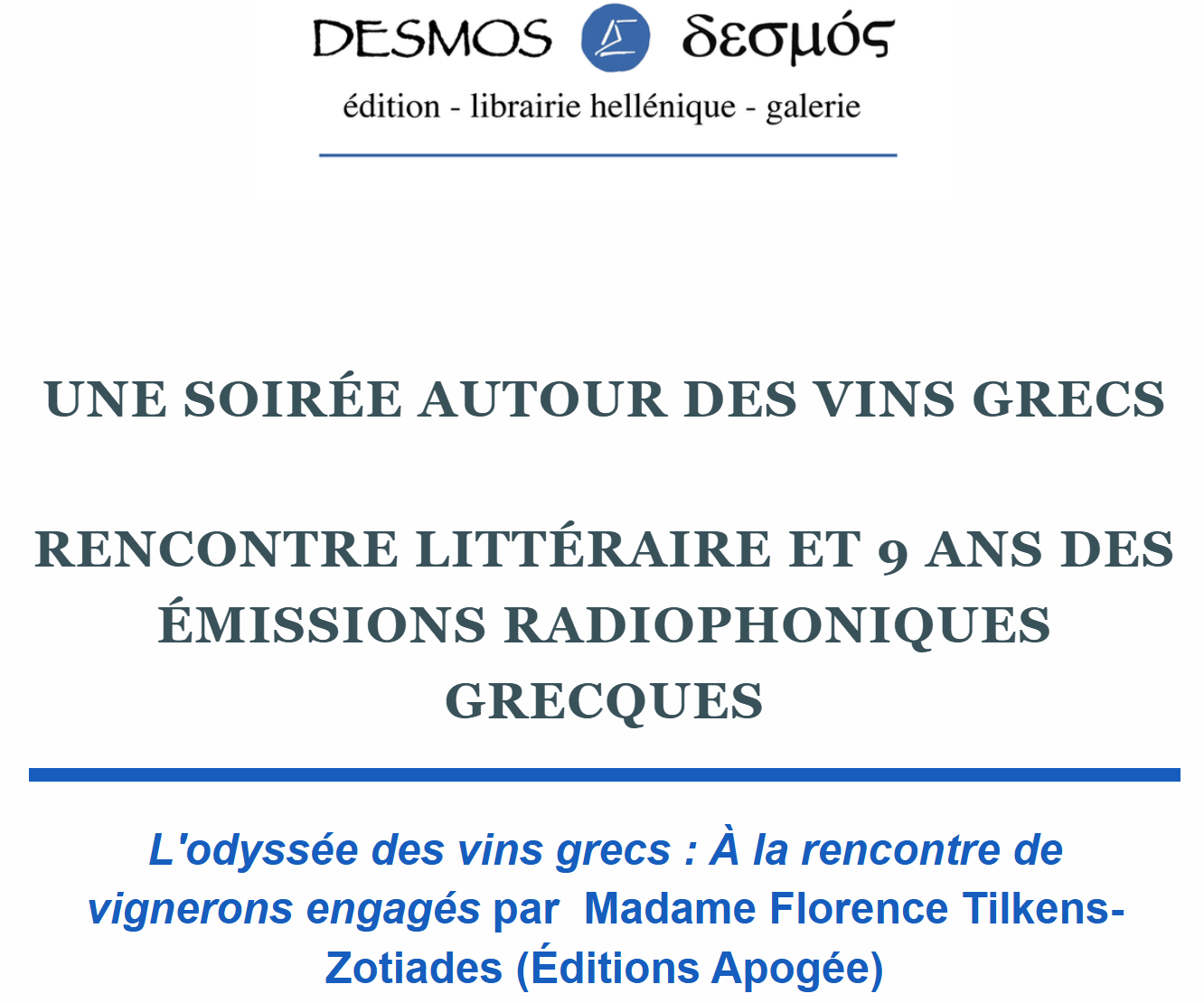 Soirée autour des vins grecs et des 9 ans des émissions radiophoniques grecques