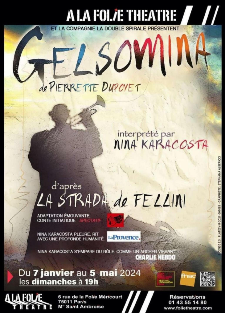 Pour cette deuxième émission de la nouvelle saison, je vous propose de voyager vers l’Italie et d’aborder quelques secrets d’art dramatique grâce à mon invitée Nina Karacosta, comédienne grecque, qui nous présentera sa pièce Gelsomina. Elle interprète seule en scène tous les personnages dans une adaptation au théâtre de la mythique Strada de Fellini, avec une une panoplie bouleversante d’émotions dans une impressionnante performance qui sublime la poésie du texte de Pierrette Dupoyet. Ce sera l’occasion d’aborder quelques aspects subtils de la culture grecque, dont certains qui ont pu enrichir ses personnages.