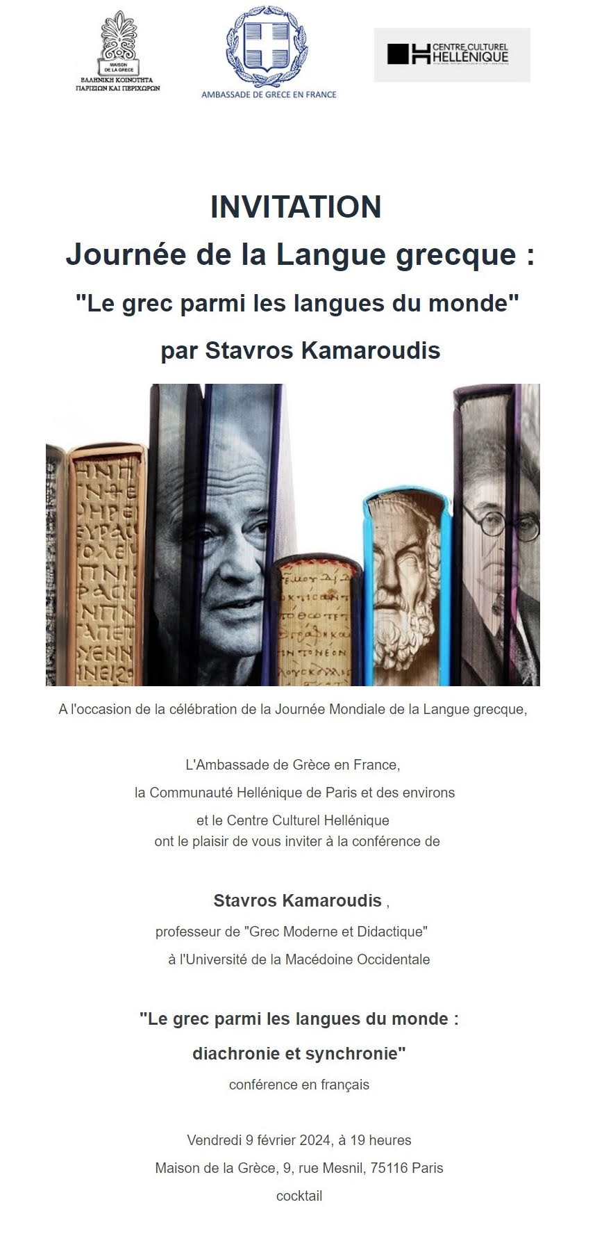 Journée de la Langue grecque : « Le grec parmi les langues du monde » avec Stavros Kamaroudis, le vendredi 9 février à 19h à la Maison de la Grèce
