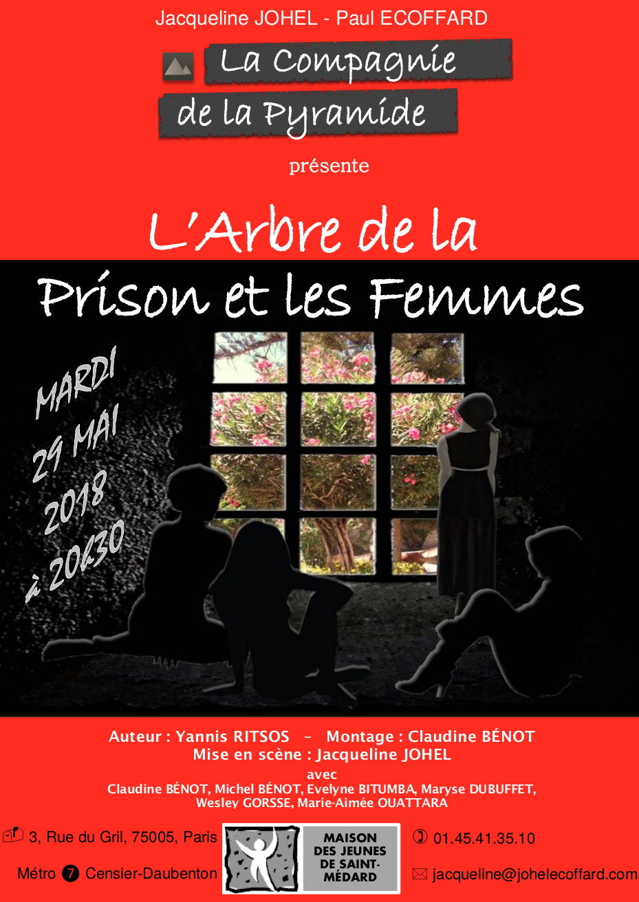 Le poète grec Yannis Ritsos (1909-1990) a connu à plusieurs reprises la déportation. Il a écrit de nombreux poèmes relatant son expérience et une pièce poétique intitulée « l’arbre de la prison et les femmes » dans laquelle des femmes déportées comme lui, parlent. Elles se confient à un arbre, leur seul compagnon, qu’elles peuvent voir depuis la fenêtre grillagée. Il est celui qui voit pour elles et qui les réconforte. Malgré leurs souffrances, leurs paroles sont un hymne à la vie et au renouveau. Des lectures de poèmes de Ritsos ponctuent et commentent leurs échanges.