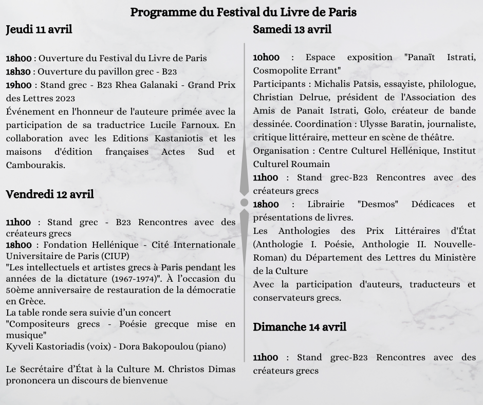 La Grèce sera présente au Festival du Livre de Paris sur le stand B23.