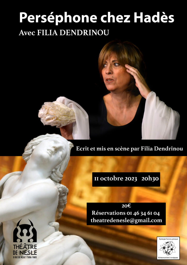 Filia Dendrinou est comédienne et théâtrologue. Elle a joué sous la direction de nombreux metteurs en scène connus, elle a mis en scène ses propres spectacles, en Grèce et dans différents festivals internationaux.