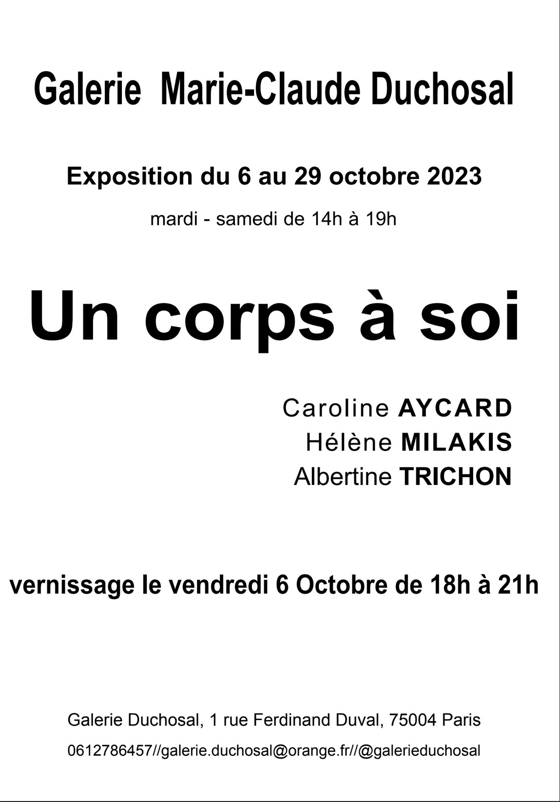 du 6 au 29 octobre 2023, vernissage le 6 octobre à 18h00.